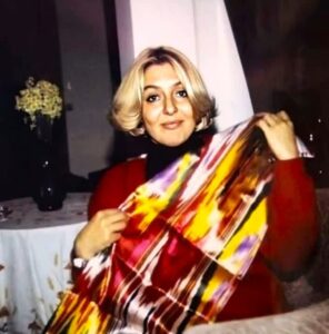 بیژن میگوید: دستگاه عکاسیات را حاضر کن تا من از تو و گوگوش برای یادگار عکس بگیرم. واقعاً در دلم این آرزو پر و بال میزد و تنها به همین خاطر چند دوربین و ویدیو همراه آورده بودم. زود به سوی آنها میروم. گوئیا محض منتظر چنین اشارهای بودم. در کیف دستگاهها نظرم به پارچۀ اطلس میافتد که با خود از دوشنبه آورده بودم، با نیت پیشکش به خانم گوگوش. اگر آدم صمیمانه بکوشد، حتماً موفق میشده است. آن را برداشتم و به سوی گوگوش برگشتم. چون گفتم: «خانم گوگوش، این پارچۀ تاجیکی هر تار و پودش با صمیمیت و محبت، اخلاص و قدرشناسی مردم تاجیک، به ویژه علاقهمندان هنر شما بافته شده است. میخواهیم در روز ۱۷ بهمن ماه (۷ فوریه) با پیراهنی که از مهر مردم تاجیک درست شده است، نزد دوستانتان حاضر شوید.» وقتى من تاریخ بهمنماه را به زبان آوردم در چشمان شهلای او اشک حلقه زد. چون این تاریخ زادروز خانم گوگوش است و به سبب به چنین حالت افتادنش هم مربوط به این تاریخ بود. او هنوز نمیدانست که در یک دیار دورافتاده هم آن قدر محبوبیت دارد که حتی زادروزش را هم میدانند.